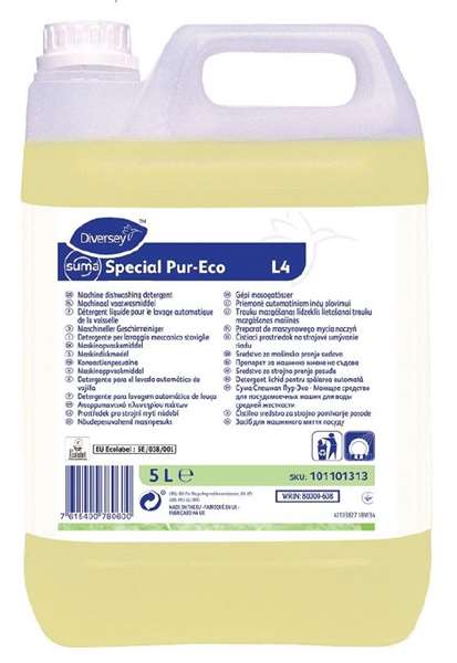 Détergent hautement alcalin pour le lavage automatique de la vaisselle en eau dure à mi-dure. Produit ECOLABEL